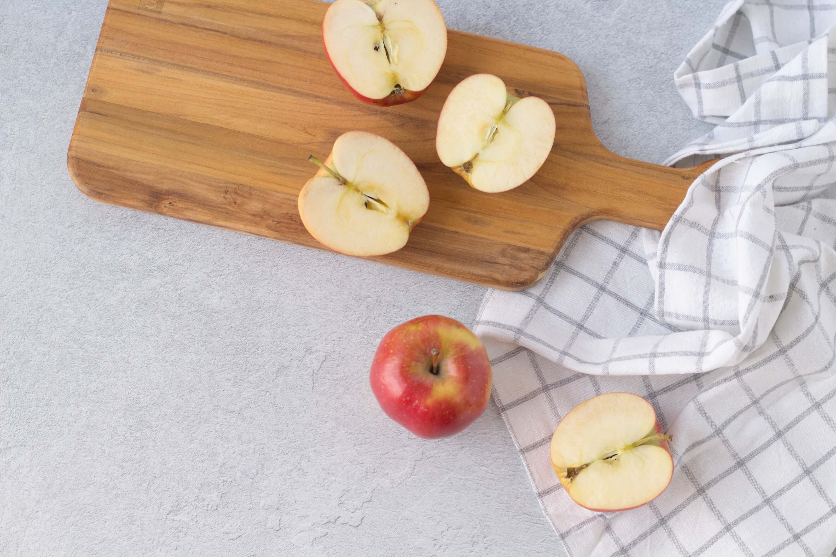 Il est essentiel de couper la pomme en petits morceaux (cubes d’un quart de pouce) avant de les mélanger aux autres ingrédients. Si les morceaux sont trop gros, ils vont couler au fond et ne vont pas cuire.