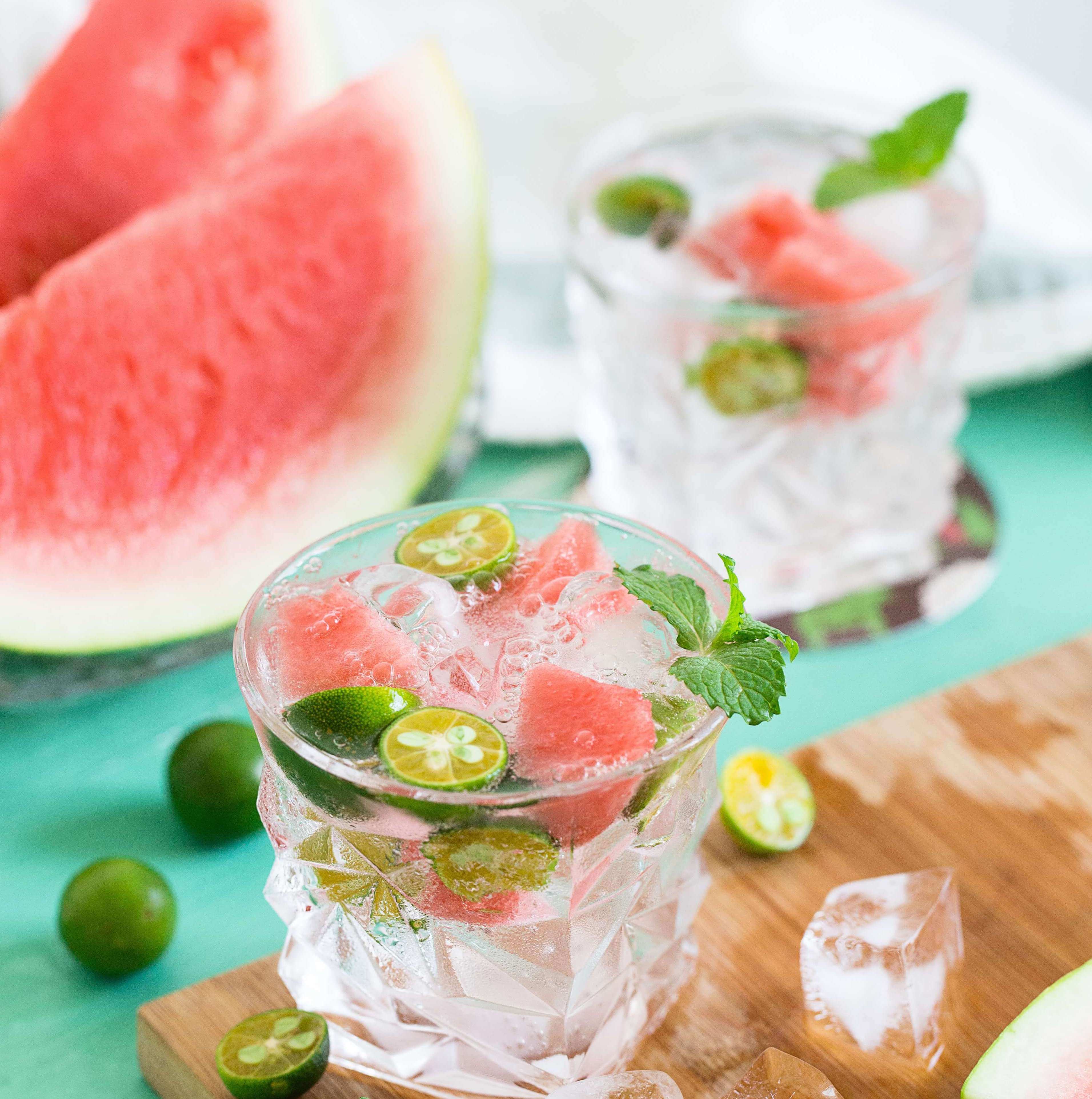 Coupez la pastèque en morceaux et mixez-la. Prélevez le jus de citron. Ajoutez-le à la pastèque. Versez l’eau pétillante et ajoutez les glaçons. Dégustez aussitôt.